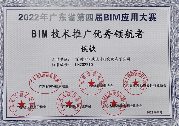 2023年3月15日,由廣東省BIM技術(shù)聯(lián)盟、廣東省建筑業(yè)協(xié)會、廣東省工程勘察設(shè)計行業(yè)協(xié)會等行業(yè)協(xié)會聯(lián)合舉辦的“廣東省第四屆BIM應(yīng)用大賽”頒獎典禮暨第七屆廣東省BIM發(fā)展論壇在廣州順利舉辦。經(jīng)大賽專家委員會評審,深圳市政院榮獲“BIM應(yīng)用示范單位”榮譽(yù)稱號。尤值一提的是,廣東省共評選10家“BIM應(yīng)用示范單位”,深圳市政院為深圳市唯一獲獎單位。此外,深圳市政院參選項目獲設(shè)計組一等獎,深圳市政院數(shù)字業(yè)務(wù)總監(jiān)侯鐵榮獲“BIM技術(shù)推廣優(yōu)秀領(lǐng)航者”稱號,賴華輝博士榮獲“BIM技術(shù)應(yīng)用杰出人才”稱號。