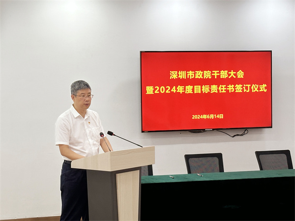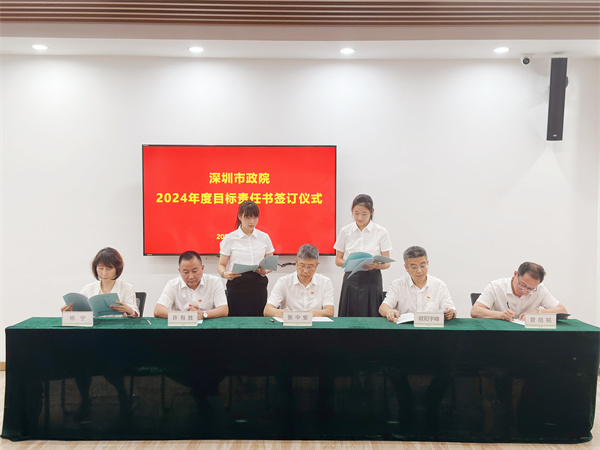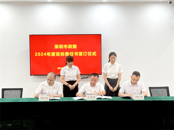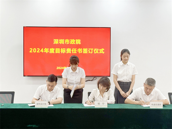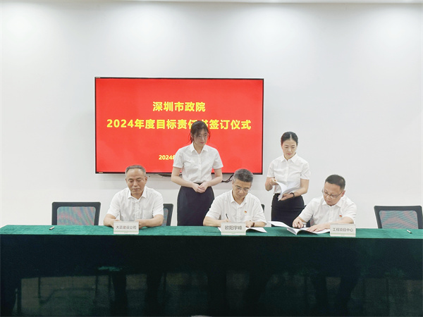 會(huì)議首先宣讀了深圳市政院組織架構(gòu)調(diào)整、外地分院整合和領(lǐng)導(dǎo)分工三個(gè)文件。隨后,深圳市政院總經(jīng)理張中安與各生產(chǎn)部門分管領(lǐng)導(dǎo)分別簽訂了2024年目標(biāo)責(zé)任書。各生產(chǎn)部門分管領(lǐng)導(dǎo)與分管部門分別簽訂了2024年目標(biāo)責(zé)任書。