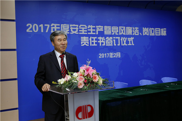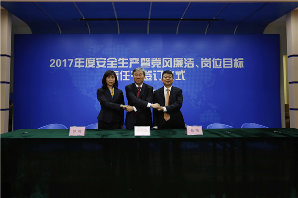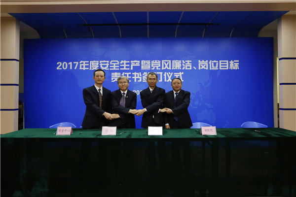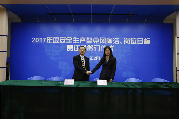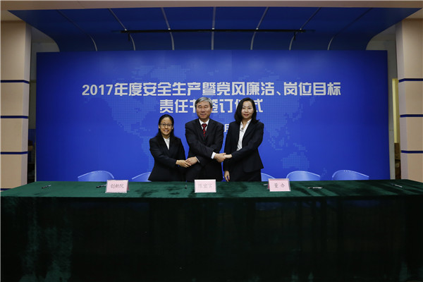 儀式開始,黨委書記、董事長陳宜言與黨委副書記、總經(jīng)理蔡明和黨委副書記、紀委書記、工會主席郭明簽署了《2017年度崗位目標責(zé)任書》、《2017年度黨風(fēng)廉潔責(zé)任書》及《2017年度安全生產(chǎn)責(zé)任書》??偨?jīng)理蔡明與副總經(jīng)理歐陽宇峰、副總經(jīng)理王建新、副總經(jīng)理張健君、副總經(jīng)理許華林、總工程師徐波簽署責(zé)任書。緊接著,各分管領(lǐng)導(dǎo)與分管部門負責(zé)人簽署責(zé)任書?!?/span>2017年度崗位目標責(zé)任書》的簽訂對各部門的工作目標進行了進一步的細化和分解,《2017年度黨風(fēng)廉潔責(zé)任書》的簽訂是提高全體黨員和領(lǐng)導(dǎo)干部廉潔從業(yè)意識的重要舉措,《2017年度安全生產(chǎn)責(zé)任書》為提升我司安全生產(chǎn)管理水平,實現(xiàn)“安全生產(chǎn)無責(zé)任事故”的年度目標奠定良好的基礎(chǔ),確保我司“項目、資金、生產(chǎn)、干部”四個安全,為我司打造“百年老店”的目標提供堅強的保障。