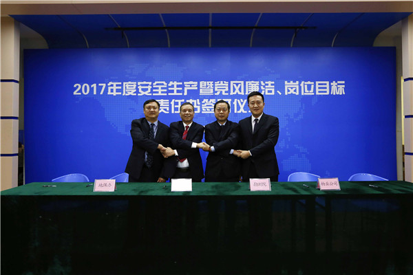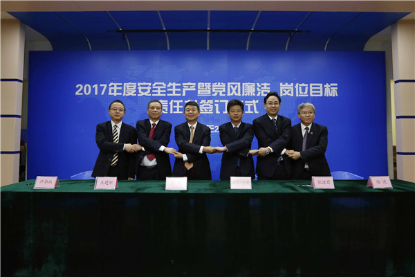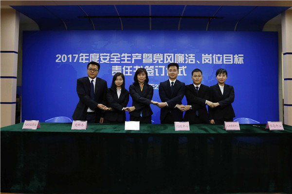 參加2017年度安全生產(chǎn)暨黨風(fēng)廉潔、崗位目標責(zé)任書簽訂儀式人員合影