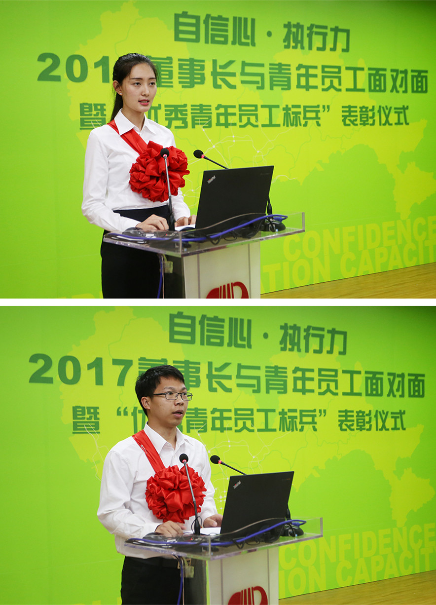 會上,陳宜言董事長對受到表彰的青年標兵表達了衷心的祝賀,希望他們珍惜榮譽、再接再厲,充分發(fā)揮模范帶頭作用,為廣大青年員工作好表率。最后,董事長作了題目為《自信心與執(zhí)行力》的主題講座,他指出青年員工要樹立自信心,正視自己、善待他人,傳遞陽光正能量,要培養(yǎng)執(zhí)行力,學(xué)會溝通、學(xué)會落實,成長為優(yōu)秀青年。青年員工聽完講座后,紛紛踴躍提問,與董事長進行了親密的互動。