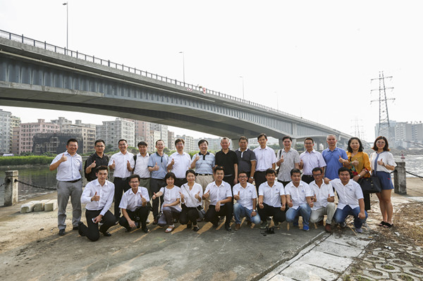 下午,部分與會嘉賓和專家又興致勃勃乘車來到東寶河新安特大橋現場進行參觀。施工單位中鐵七局集團有限公司的現場負責人向大家介紹了項目的基本情況和施工進展,并與大家進行了愉快的交流。據悉,東寶河新安特大橋位于深圳與東莞交界的東寶河上,采用城市主干道標準進行設計,分左右兩幅,于2014年12月17日開工建設,2017年1月完成合龍,預計2017年8月通車。
