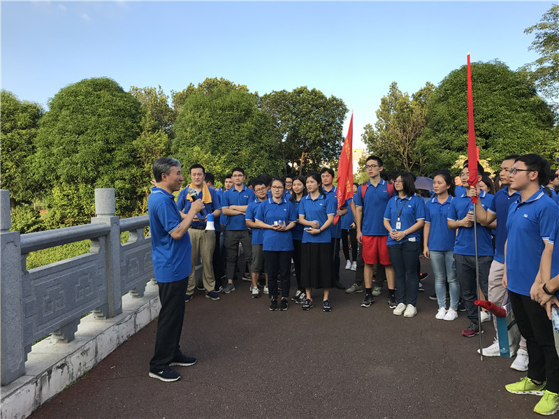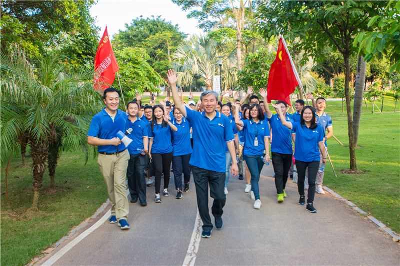 時節(jié)正初秋,諸君結(jié)伴游。當(dāng)天下午,董事長陳宜言大師率近150名青年員工統(tǒng)一著裝,參與了“慶國慶 迎中秋”健走活動,員工們排著整齊的隊伍、邁著矯健的步伐、意氣風(fēng)發(fā)地朝著中心公園前進,健步走隊伍宛如一條藍色的市政蛟龍穿梭于中心公園。員工個個興致高漲,盡情享受秋游健走之樂。健走期間,董事長精彩的知識科普,更是將健步走活動的興致推向頂峰。青年員工們在強身健體之時,也學(xué)習(xí)了更多的知識?!霸轮杏锌驮址N,世上無花敢斗香”,雖因地域和氣候原因,無菊無桂可賞,但與大師及眾多同事同行,濃濃的“家文化”氤氳其間,可以說,縱使花中第一流,亦可憑此斗花香!
