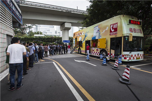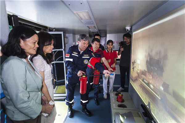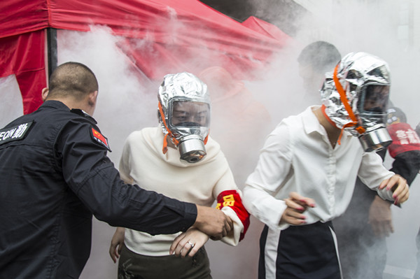滅火毯、防煙面具、獨立無線煙感報警器、投擲滅火彈、環(huán)保水基型滅火器、穿越火災(zāi)煙霧場景帳篷等消防知識講解精彩紛呈。