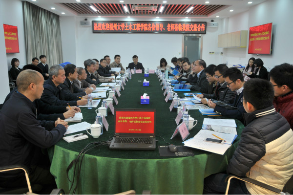 會上,董事長陳宜言大師代表公司對布魯諾院長一行表示熱烈歡迎,并介紹了我公司博士后科研工作站、科研團隊和科技創(chuàng)新工作以及相關(guān)專業(yè)技術(shù)人員配備情況。他表示,希望雙方能夠就人才交流、科研項目等多方面開展緊密的技術(shù)合作,實現(xiàn)雙方共贏發(fā)展。隨后布魯諾院長對我公司的熱情接待表示感謝,對我院在人才建設(shè)與科研創(chuàng)新方面的重視給予了高度評價,并表示校企合作有助于高??蒲谐晒耐茝V應(yīng)用,希望未來在新材料、新技術(shù)方面能與我公司有更多的交流與合作。隨后,福州大學(xué)胡昌斌副院長對福州大學(xué)土木工程“一流學(xué)科”建設(shè)情況進行了介紹,并表示希望通過加強校企合作交流以努力實現(xiàn)十三五規(guī)劃的目標(biāo)。
