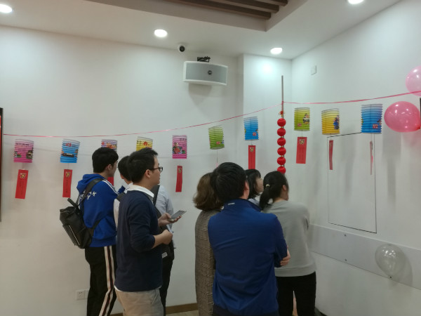 活動(dòng)的第二個(gè)環(huán)節(jié)是“猜燈謎”,猜燈謎又稱打燈謎,是從古代流傳至今的元宵節(jié)特色活動(dòng)。團(tuán)委精心為員工準(zhǔn)備了數(shù)十個(gè)燈謎掛在燈籠墻的燈籠下,大家對(duì)這一傳統(tǒng)民俗文娛活動(dòng)形式興致很高,時(shí)而低頭思索,時(shí)而相互討論,熱鬧非凡。