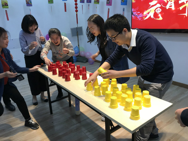 最后是精彩的游戲環(huán)節(jié),通過(guò)簡(jiǎn)簡(jiǎn)單單的紙杯設(shè)置了多個(gè)趣味十足的游戲,大家一同參與,緊張刺激而又其樂(lè)融融。