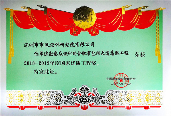 近日,由公司勘察設計的合肥市包河大道高架工程獲得2018-2019年度國家優(yōu)質工程獎。