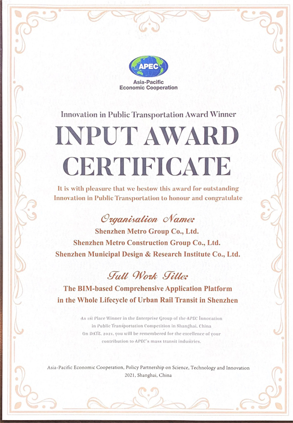 6月19日,亞太經(jīng)合組織(APEC)公共交通科技創(chuàng)新競(jìng)賽頒獎(jiǎng)儀式在上海舉行,深圳市政院作為技術(shù)支持單位提報(bào)的兩項(xiàng)參賽作品分別獲得賽事最高獎(jiǎng)項(xiàng)一等獎(jiǎng)和二等獎(jiǎng)。此次獲獎(jiǎng),是深圳市政院在企業(yè)機(jī)構(gòu)重組后面向公共交通科技創(chuàng)新領(lǐng)域取得的首個(gè)亞太區(qū)域成績(jī),也標(biāo)志著深圳市政院公共交通創(chuàng)新發(fā)展研究朝國(guó)際行業(yè)領(lǐng)先水平又邁進(jìn)了一步。