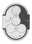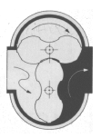 | 氣體進入 儀表上游腔體 | 氣體推動 腰輪轉(zhuǎn)動 | 氣體經(jīng)過計量 腔排出計量腔 | 每對轉(zhuǎn)子旋轉(zhuǎn)一周 排出等體積氣體4次 |