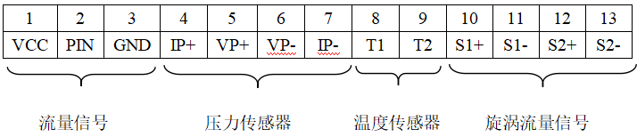 | 傳感器通道1 漩渦流量信號 | S1 | + |