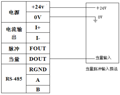 流量計需要流量脈沖信號輸出時,需外電源供電,供電電壓+24VDC。