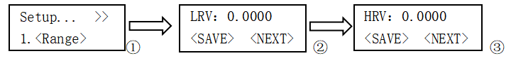 長(zhǎng)按 M 鍵 5 秒以上,進(jìn)入設(shè)置菜單,此時(shí)顯示菜單 1<Range> ①。