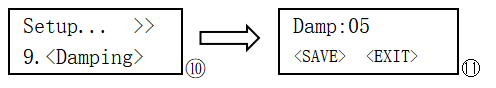 長(zhǎng)按 M 鍵 5 秒以上,進(jìn)入設(shè)置菜單,按 8 次 S 鍵,進(jìn)入菜單9 <Damping> ⑩ ,按 M 鍵,進(jìn)入設(shè)置。